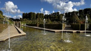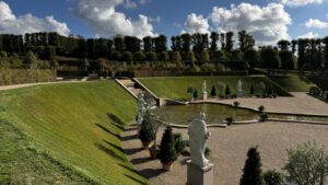 Nachdem wir das Schloss ausführliche von innen besichtigt haben, ging es für uns in die barocken Schlossgärten auf der Rückseite des Schlosses. Eine Wasserachse mit diversen Springbrunnen verläuft geradlinig durch die Gärten und bildet eine Linie mit dem Schloss.