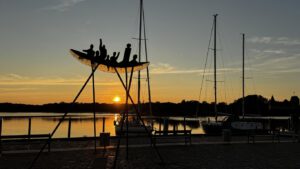 Gelandet sind wir dann in Nysted, einem kleinen Hafenörtchen an der Südküste der Insel Lolland. Auch hier haben wir wieder einen perfekten Stellplatz direkt am Hafen der Stadt. Wir waren pünktlich vor dem Sonnenuntergang hier und konnten diesen in vollen Zügen genießen. Morgen wollen wir uns dann unter anderem die Stadt Nysted noch näher ansehen.
