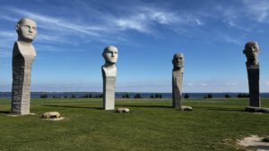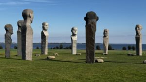 Die Idee des Kunstwerks hatten zwei Künstler, ein Bildhauer und ein Komponist. Sie begannen bereits 2010 mit dem Bau. Jede Granitsäule ist zwischen 7 und 9 Metern hoch und wiegt bis zu 45 Tonnen. Jeweils die oberen zwei Meter sind als Köpfe gestaltet, die allesamt zur Kreismitte blicken. Untermalt wird das Ganze von elektronischer Musik, die sich immer individuell dem Wetter, der Jahreszeit, dem Licht und den Gezeiten anpasst. Diese eigenwillige Kombination verleiht dem ganzen Bauwerk eine sehr eigenwillige und mystische Stimmung. Da der Steinkreis oberhalb der Küste liegt, schaut man von hier aus bis über die Ostsee.