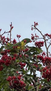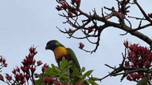 Kurz vor unserem Stellplatz haben wir dann noch minutenlang Papageien beobachtet, welche in einem Baum am Spielen waren. Eine ganz neue Erfahrung, wilde Papageien in Freiheit zu sehen. Generell fällt uns auf, dass wir hier ganz viele andere Vogelgeräusche hören als was wir kennen.