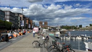 Den Tag wollten wir dann gemütlich im „neuen“ Hafen Aker Bryggen ausklingen lassen. Der Bereich ist gesäumt von vielen modernen Gebäuden, eine tollen Promenade am Wasser mit unzähligen Restaurants, Bars, Cafés etc. Das Viertel gilt als die Flaniermeile Oslos. Wir haben hier auf einem schwimmenden Schiff zu Abend gegessen bevor es zurück zum Wohnmobil ging.