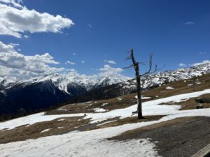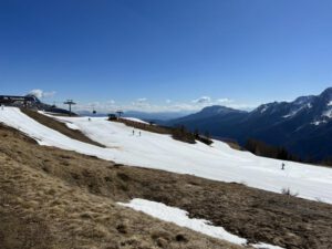 Da die Skisaison noch 2 Tage bis nach Ostern geht, konnten wir die letzten Skifahrer des Jahres beobachten. Wir selber sind einen entspannten Rundwanderweg gewandert, haben die Sonne und das traumhafte Panorama genossen bevor wir in die Alm eingekehrt sind.