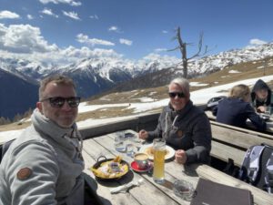 Wir lieben es immer wieder, auf den Panoramaterrassen von Almen zu sitzen und die Aussicht einfach zu genießen.