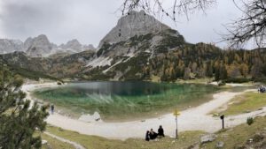 Unser Fazit ist, dass wir diese Wanderung auf jeden Fall nochmal machen werden, wenn klar ist, dass der Tag komplett sonnig wird. Und am besten in der Hauptsaison, wenn die Bergbahn länger fährt und man sich so länger am See aufhalten kann. Gerne möchten wir dieses Panorama nochmal in all seiner Schönheit und seinen Farben im Sonnenschein genießen.