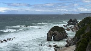 Nach nur wenigen Kilometern kommt man an eine langgezogene Bucht, wo der Cuttagee Beach beginnt. Besonders heute war es hier sehr beeindruckend, da sich die meterhohen Wellen hier im Wasser brechen und dann an den Strand spülen. Diese schöne Bucht lädt auf jeden Fall zu einem Besuch am Strand und einer kleinen Pause ein.
