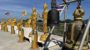 Der erste Stopp führte uns hoch in die Berge zur Big Buddha Statue. Big Buddha oder der große Buddha von Phuket ist eine sitzende Maravija-Buddha-Statue in der Nähe von Chalong auf dem Nakkerd Hill. Der Big Buddha von Phuket ist mit 45 Metern Höhe und einem Durchmesser von 25 Metern die drittgrößte Buddha-Statue in Thailand. Die komplette Statue ist außen mit burmesischem weißen Marmor verkleidet.