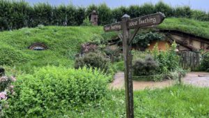 Der bekannteste Drehort ist wohl Hobbiton Village, die Heimat der Hobbits im Auenland. Eigentlich ist es ein riesiges Farmgelände „The Shire´s Farm“ mit über 20.000 Schafen. Aus einem Helikopter in der Luft hat der Regisseur Peter Jackson das Farmgelände gesehen und für ihn war es die passende Landschaft des Auenlands wie in den Büchern von J.R.R. Tolkien beschrieben.