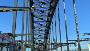 Bondi Beach liegt rund 10 Kilometer östlich der Innenstadt von Sydney direkt am offenen Ozean. Es ist der Strand, welcher der Stadt am nächsten liegt und dementsprechend beliebt ist er sowohl bei Einheimischen als auch Touristen. Da wir im nördlichen Bezirk von Sydney übernachtet hatten, durften wir sogar noch mal mit unserem Camper über die Harbour Bridge fahren.