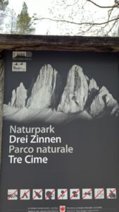 Erstes Ziel sollte der Aussichtspunkt „3 Zinnen“ sein – der einzige Punkt, wo man von der Straße aus dieses bekannte Bergmassiv sehen kann. Wetterbedingt blieb es allerdings bei Wolken und Hochnebel, den wir zu sehen bekamen…