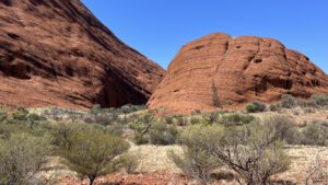 Da der Tag noch recht früh war, haben wir uns dann noch für eine zweite Wanderung am Kata Tjuta entschieden: Walpa Gorge. Hier führt ein Wanderweg der Schwierigkeit 3 ins Tal zwischen zwei Bergen hinein. Angegeben mit 2,6 Kilometern waren wir auch hier gut 3 Kilometer unterwegs. Aber für nur eine Schwierigkeitsstufe niedriger, war dies ein reiner Spaziergang.