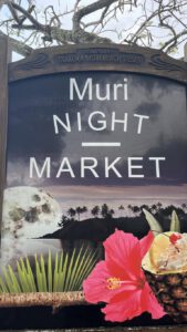 Nachdem wir dann durch die Hauptstadt gefahren sind, war es noch ein Rückweg von rund 10 Kilometern bis zum Muri Beach. Hier findet 4 x in der Woche ein Night Market statt. Dieser ist genauso aufgebaut mit vielen Ständen wie in Asien, an denen man Essen bekommt und in der Mitte stehen die Palstiktische und –stühle wo man sich hinsetzen kann. Auch die Küche war sehr asiatisch, aber frisch und lecker. Nur die Preise waren nicht mit denen in Asien zu vergleichen.